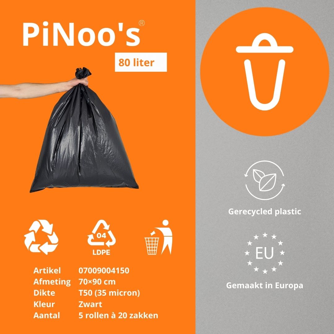 Sterke grijze vuilniszakken vervaardigt van sterk LDPE-plastic. De vuilniszakken van 80 liter hebben een formaat van 70×90 cm. Ze zijn erg sterk en hebben een hoge draagkracht door het stevige materiaal en de dikte van T50. Ideaal voor het normale huisafval, grotere afvalbakken op kantoor of in de horeca omdat ze extra stevig zijn. Deze grijze zakken zijn voor 98% geproduceerd van gerecycled materiaal.
