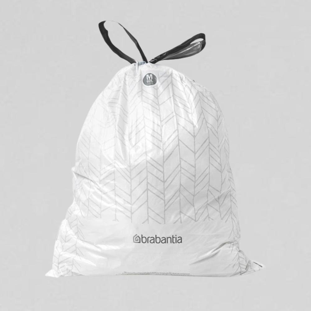 Brabantia vuilniszakken code R zijn vervaardigd van LDPE-plastic. Deze vuilniszakken hebben een afmeting van 69×62 cm en een dikte van 24 My. Deze zakken zijn onder andere geschikt voor Brabantia prullenbakken met code R. De vuilniszakken hebben een inhoud van 36 liter. De vuilniszakken zijn handig te sluiten en dragen met behulp van een trekbandsluiting. In een doos zitten 12 rollen à 10 zakken (120 zakken).